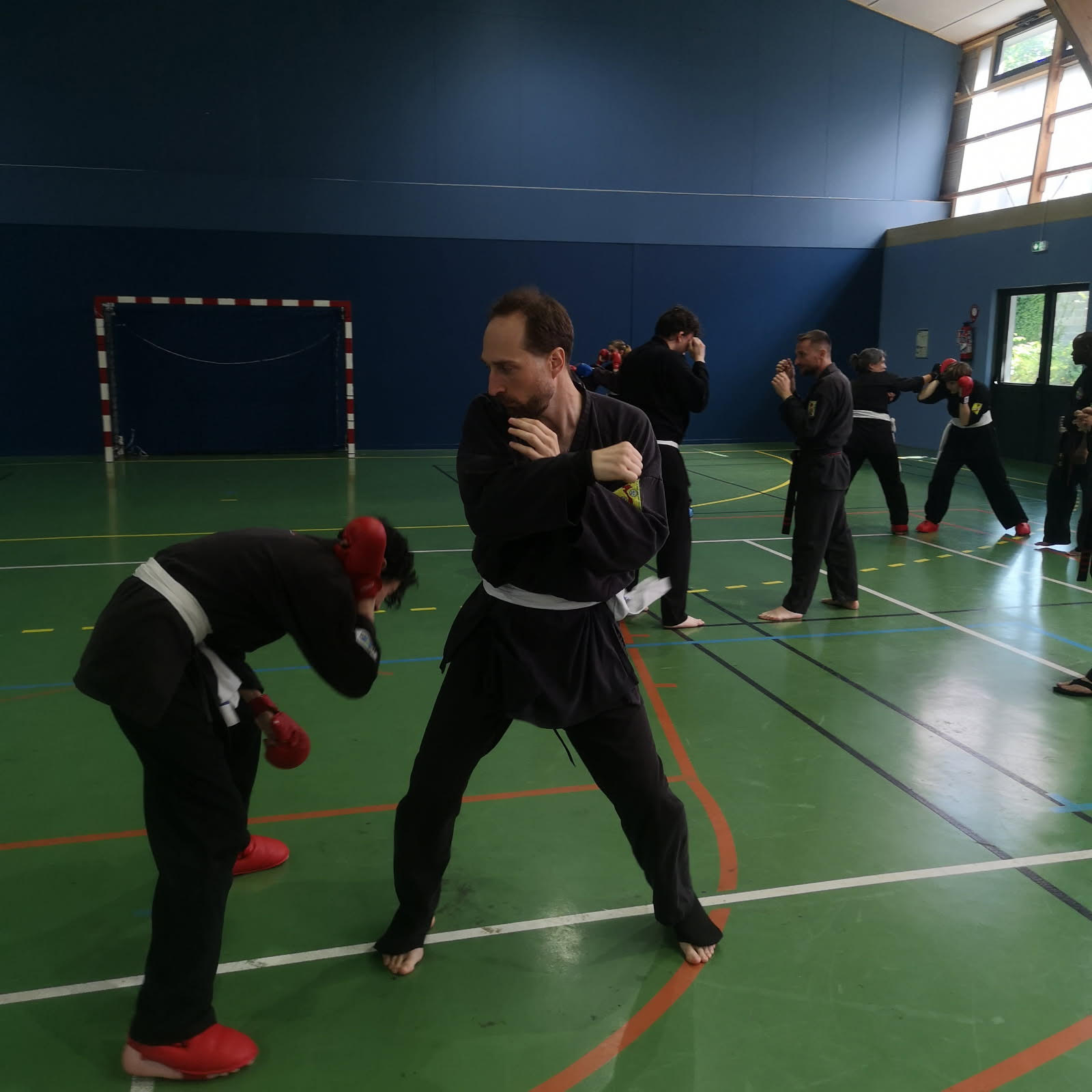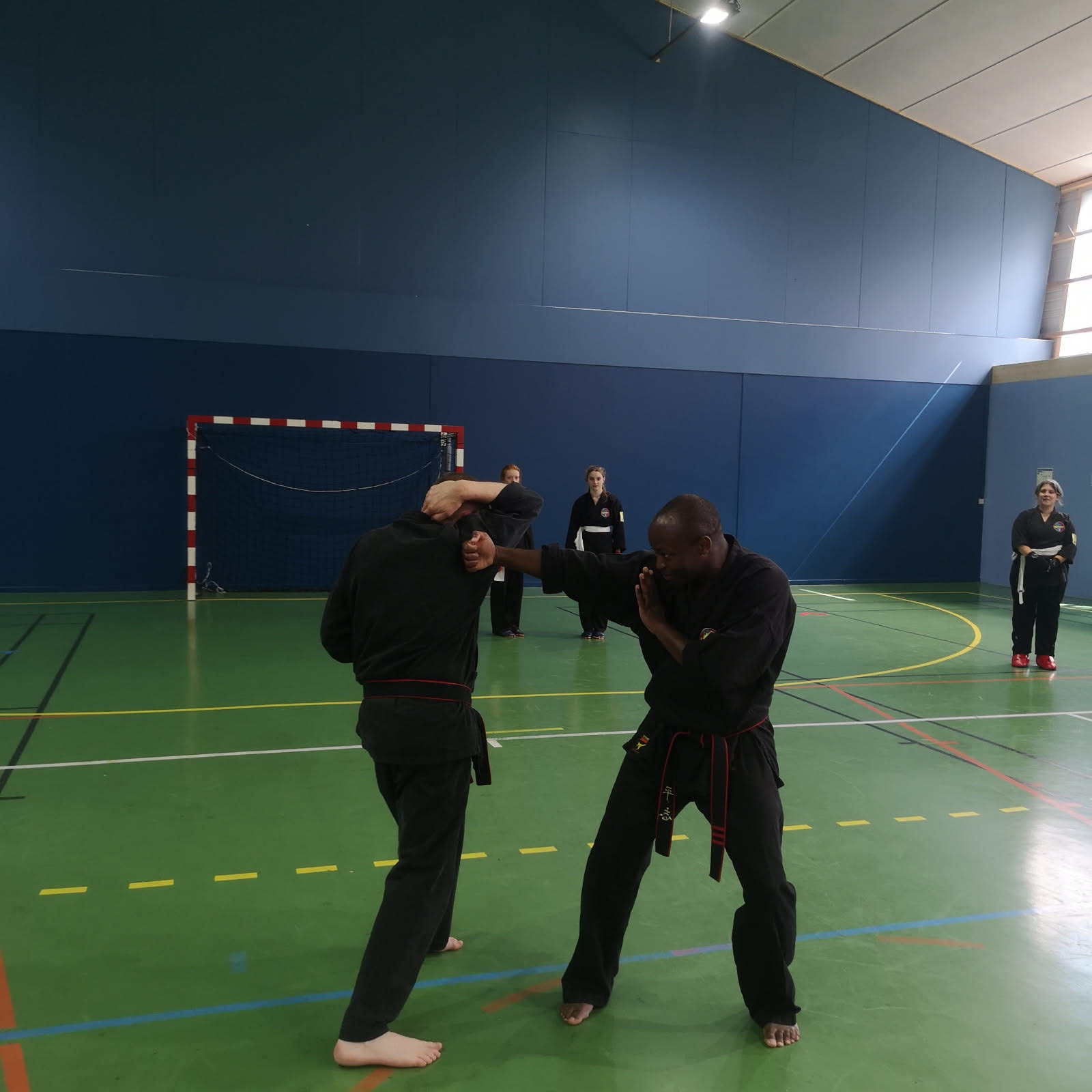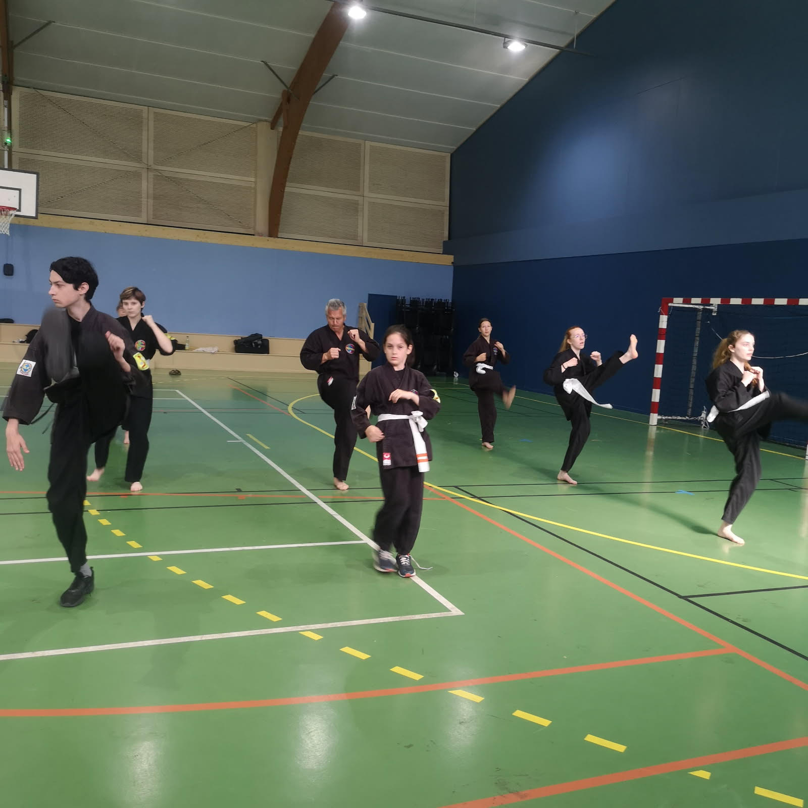L’après-midi a été dédiée au travail des coups de pied, avec des exercices spécifiques de renforcement musculaire et d’assouplissement, toujours dans une dynamique à la fois rigoureuse et bienveillante.