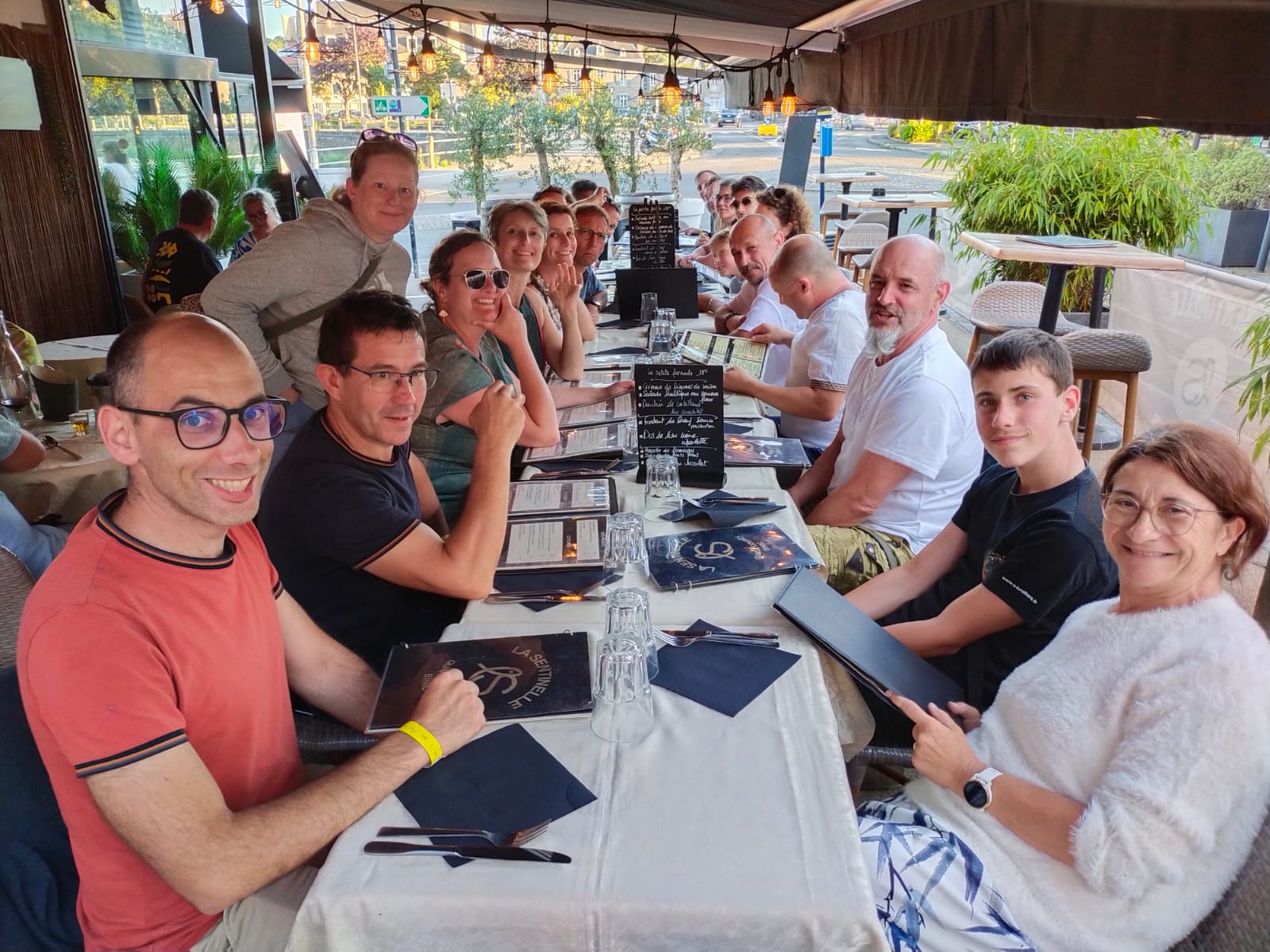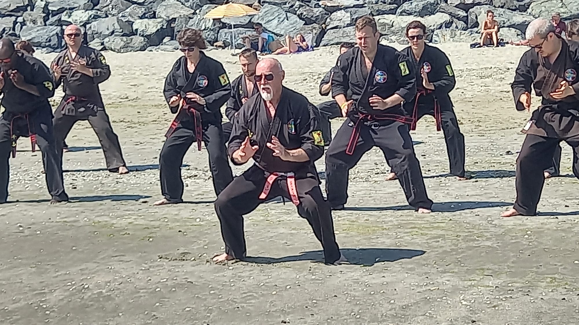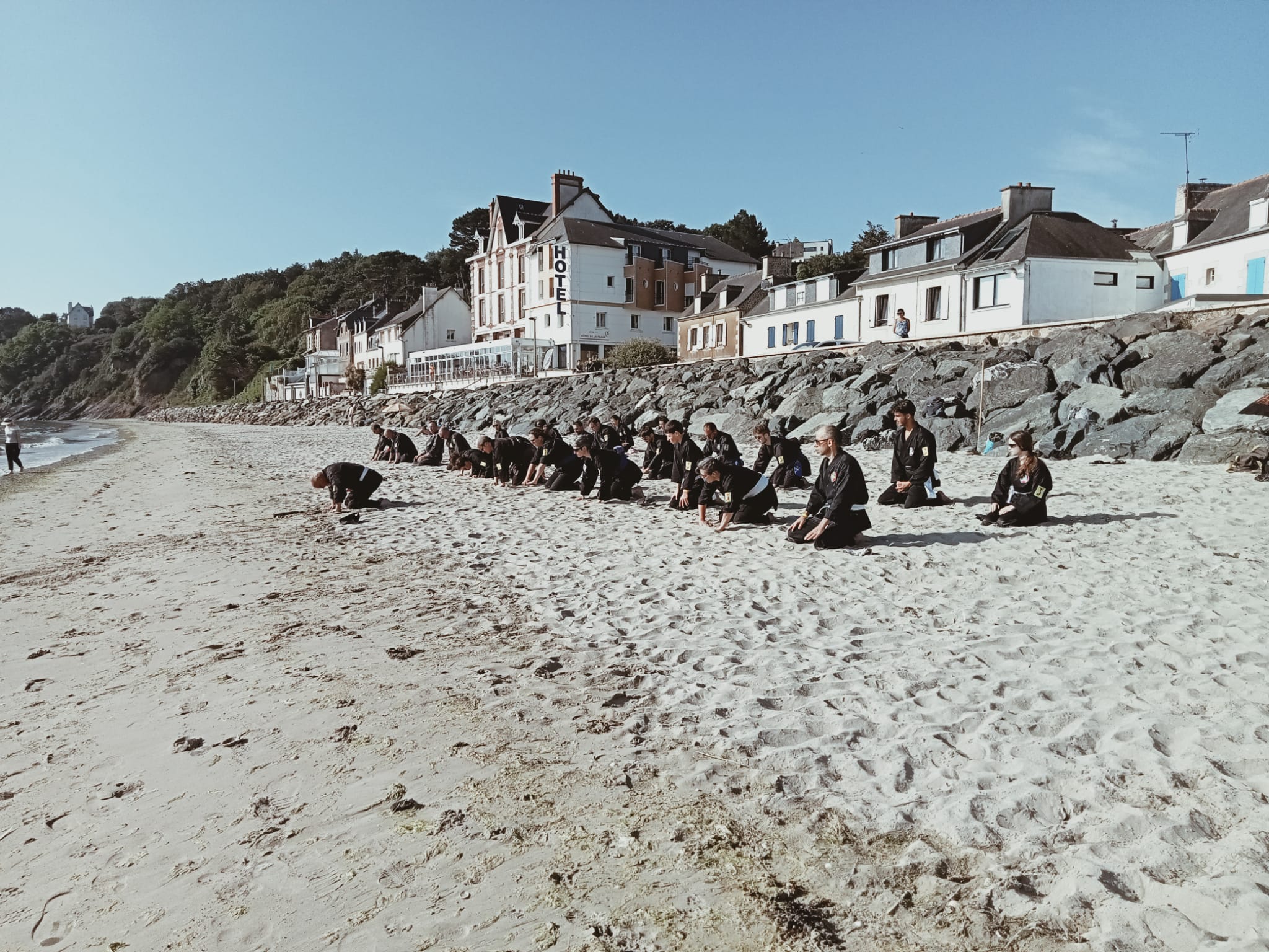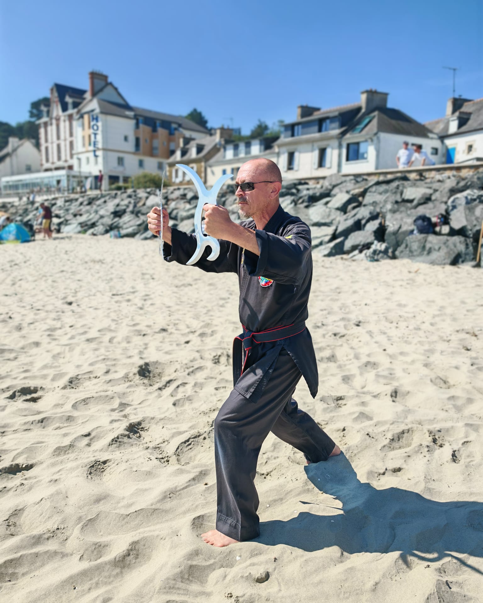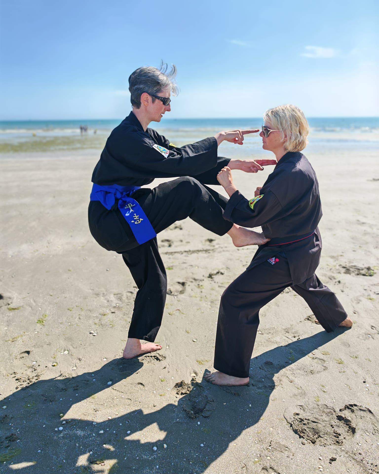 Dès le samedi matin, les plus matinaux ont lancé le stage par un footing avec Maëva, avant de se retrouver tous ensemble sur le sable pour une première session technique sous un soleil écrasant. Au programme : révisions des quyền mains nues de l’École, concentration… et transpiration ! L’après-midi libre a permis à chacun de récupérer à sa manière : balade, baignade, glace ou sieste. Le soir, tout le monde s’est retrouvé autour d’un bon repas au restaurant.