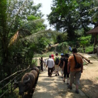 Nous quittons Thanh Linh en direction de Hoa Binh en empruntant la piste Ho chi Minh. La Piste Hô Chi Minh est un ensemble de routes et de sentiers employés par l’Armée populaire vietnamienne et les combattants du Front national de libération du Sud Viêt Nam pour le ravitaillement en nourriture et en matériel des miliciens du Sud. Nous avons pu assister au bord de la route à un combat de buffles.