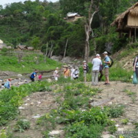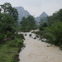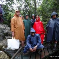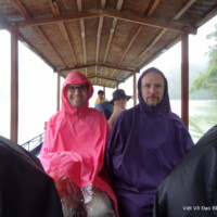 Nous avons réembarqué affublés de nos ponchos du fait d’une pluie soutenue et navigué pendant 30mn puis marché jusqu’à une cascade. Le retour s’est fait sous la pluie également. Après le débarquement nous avons marché 1km jusqu’à un village Tay et nous nous sommes installés dans une maison d’hôte locale. Le dîner s’est fait dans la bonne humeur, la famille étant très accueillante et son saké fort bon !