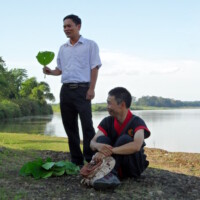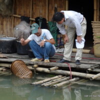 Direction le barrage de la région de Hoa Binh, afin d’embarquer pour une excursion d’une vingtaine de kilomètres (une heure et demie de trajet) dans le but d’atteindre un village de la minorité Kho Mu. Le bateau est la seule possibilité d’atteindre ce lieu. Ici, pas de téléphone, la télévision est un objet de luxe. Ensuite nous avons pris la direction de Quy Hop.