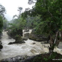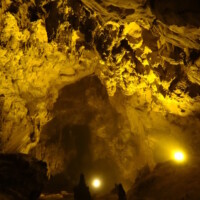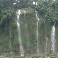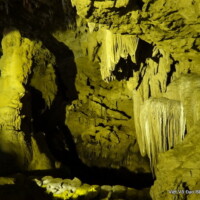 Nous sommes partis vers 8h de Cao Bang par un temps tout aussi maussade que la veille pour nous rendre à la cascade de Ban Gioc, à 80 km de là par des routes de montagne non goudronnées. En chemin nous nous sommes arrêtés pour visiter la grotte Nguom Ngao située dans une vallée encaissée. Cette grotte a accueilli plus de 2000 Vietnamiens lors de l’invasion du nord Vietnam par la Chine en 1979. On y trouve de très belles stalagmites et stalactites.